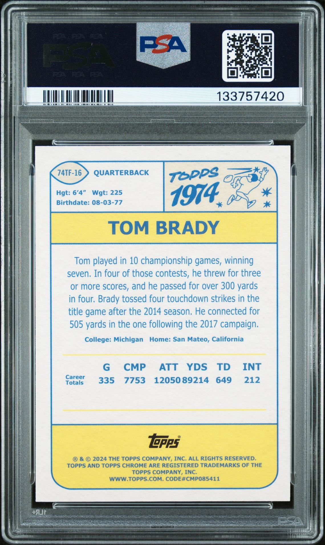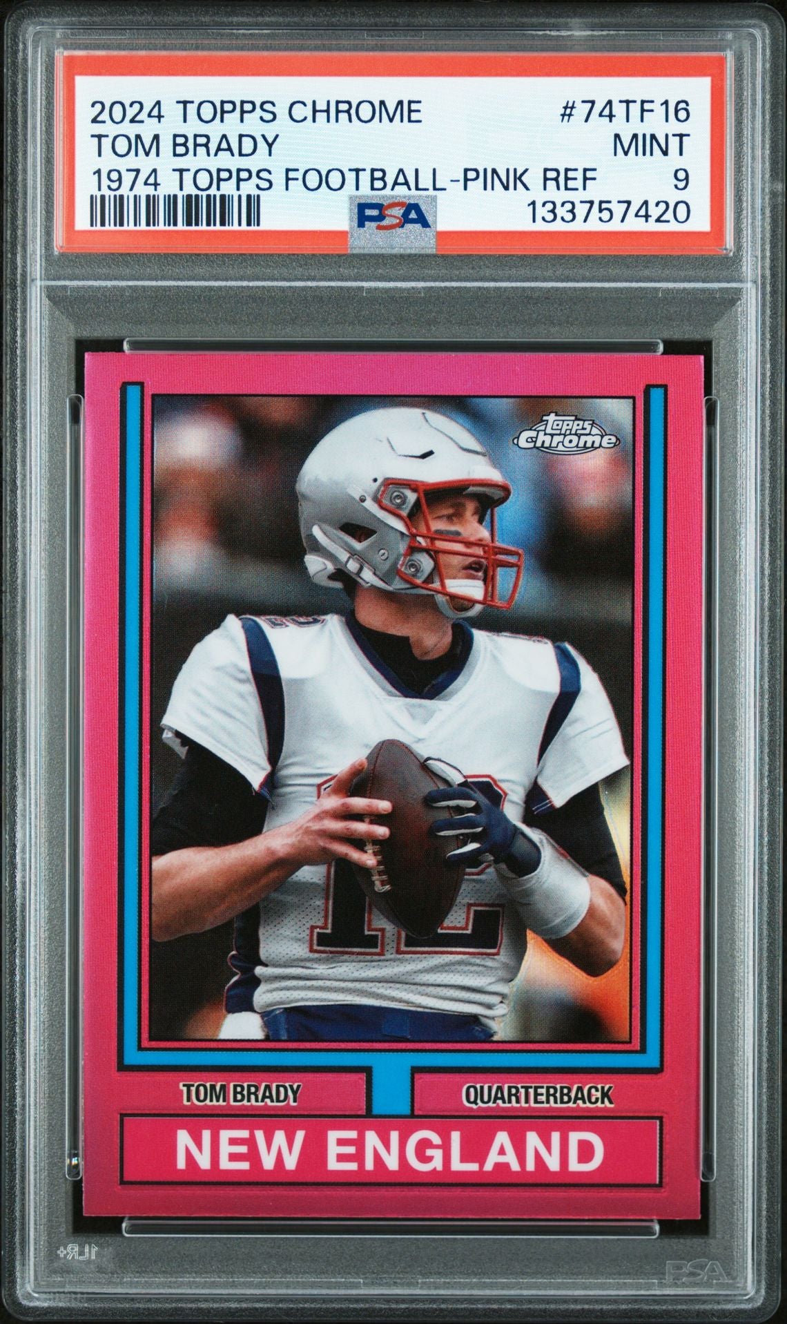 2024 Topps Chrome 1974 Topps Football #74TF-16 Tom Brady Pink Refractor PSA 9