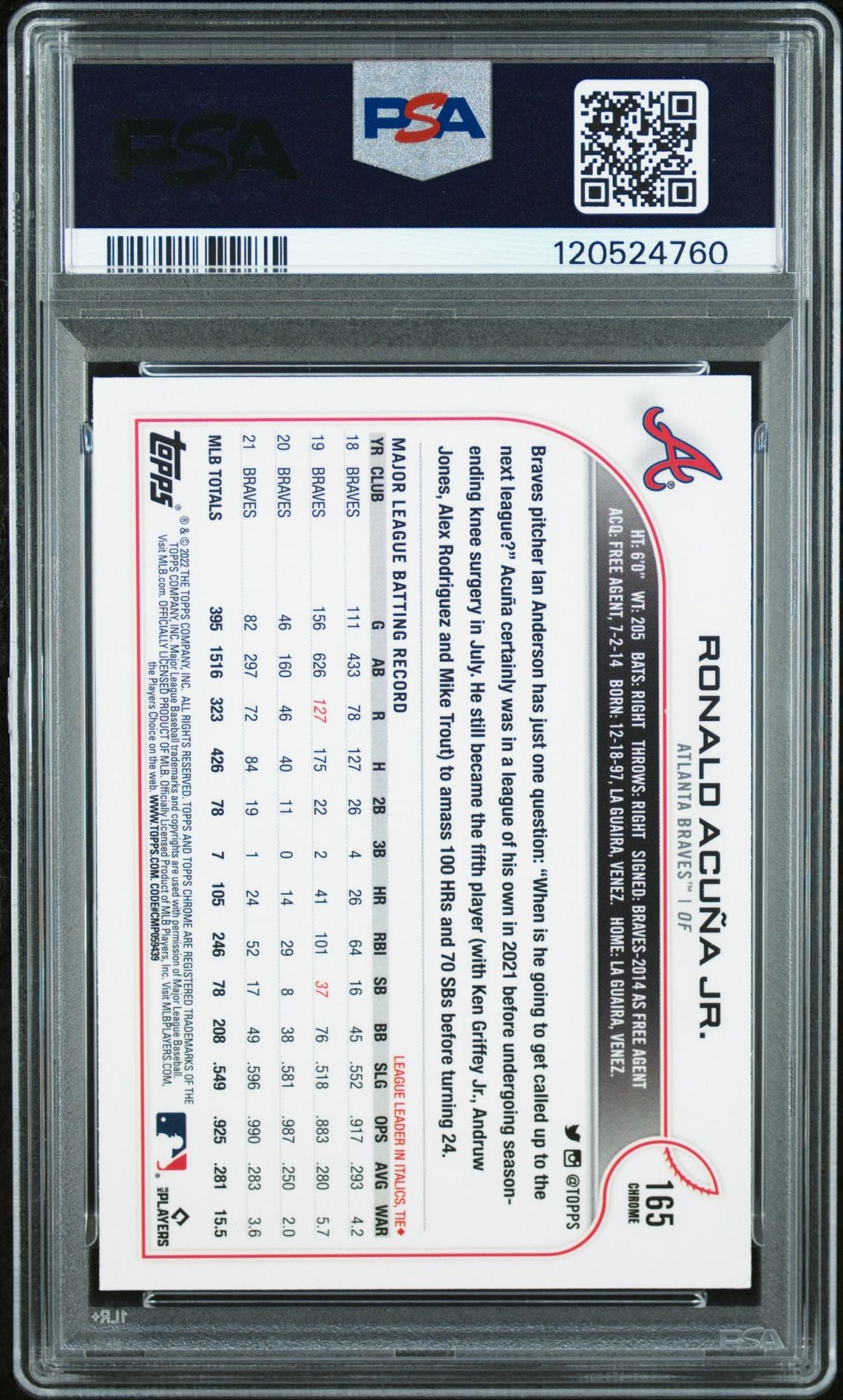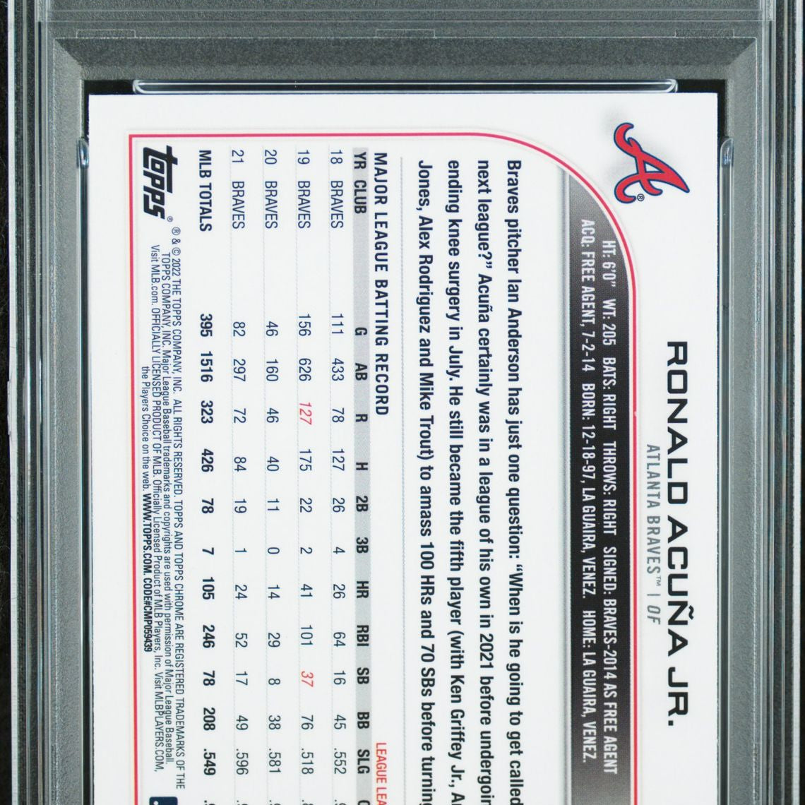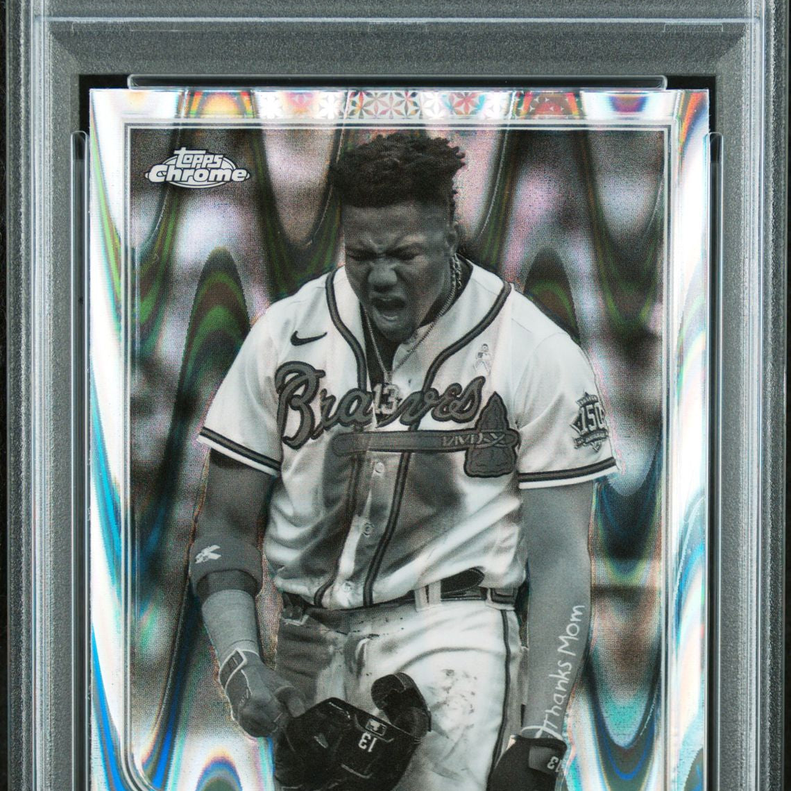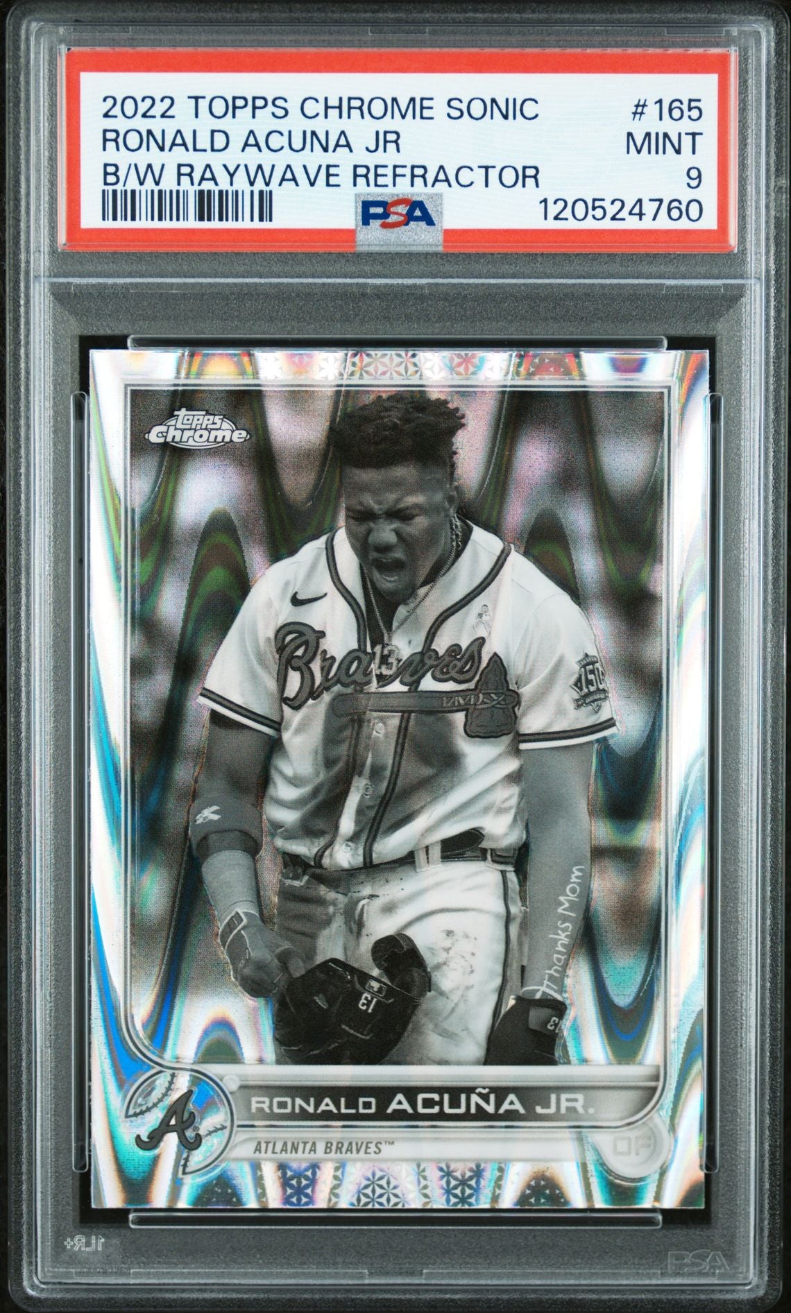 2022 Topps Chrome Sonic #165 Ronald Acuna Jr Black & White RayWave Refractor PSA 9