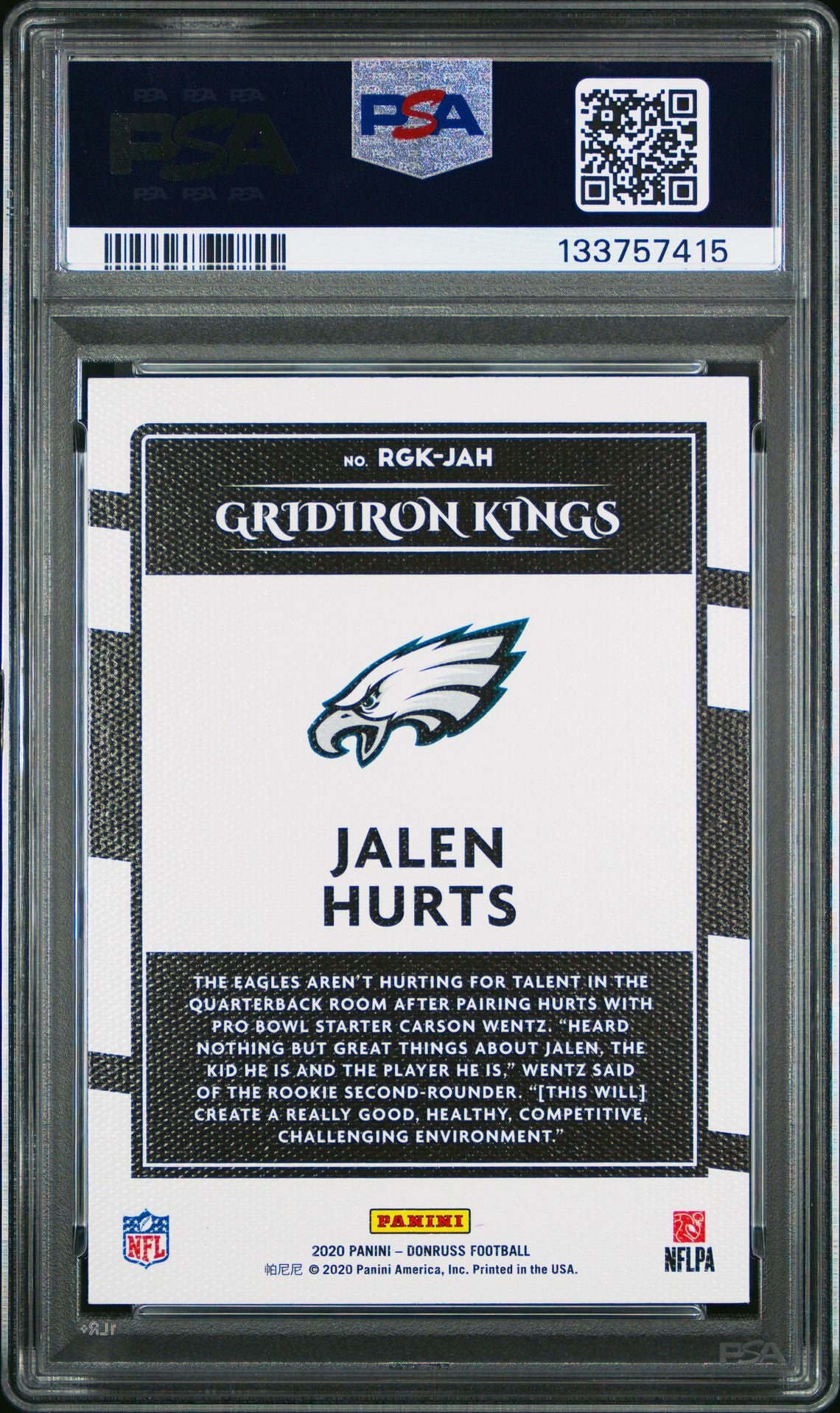 Product Name: 2020 Panini Donruss Gridiron Kings #RGK-JAH Jalen Hurts Rookie PSA 10