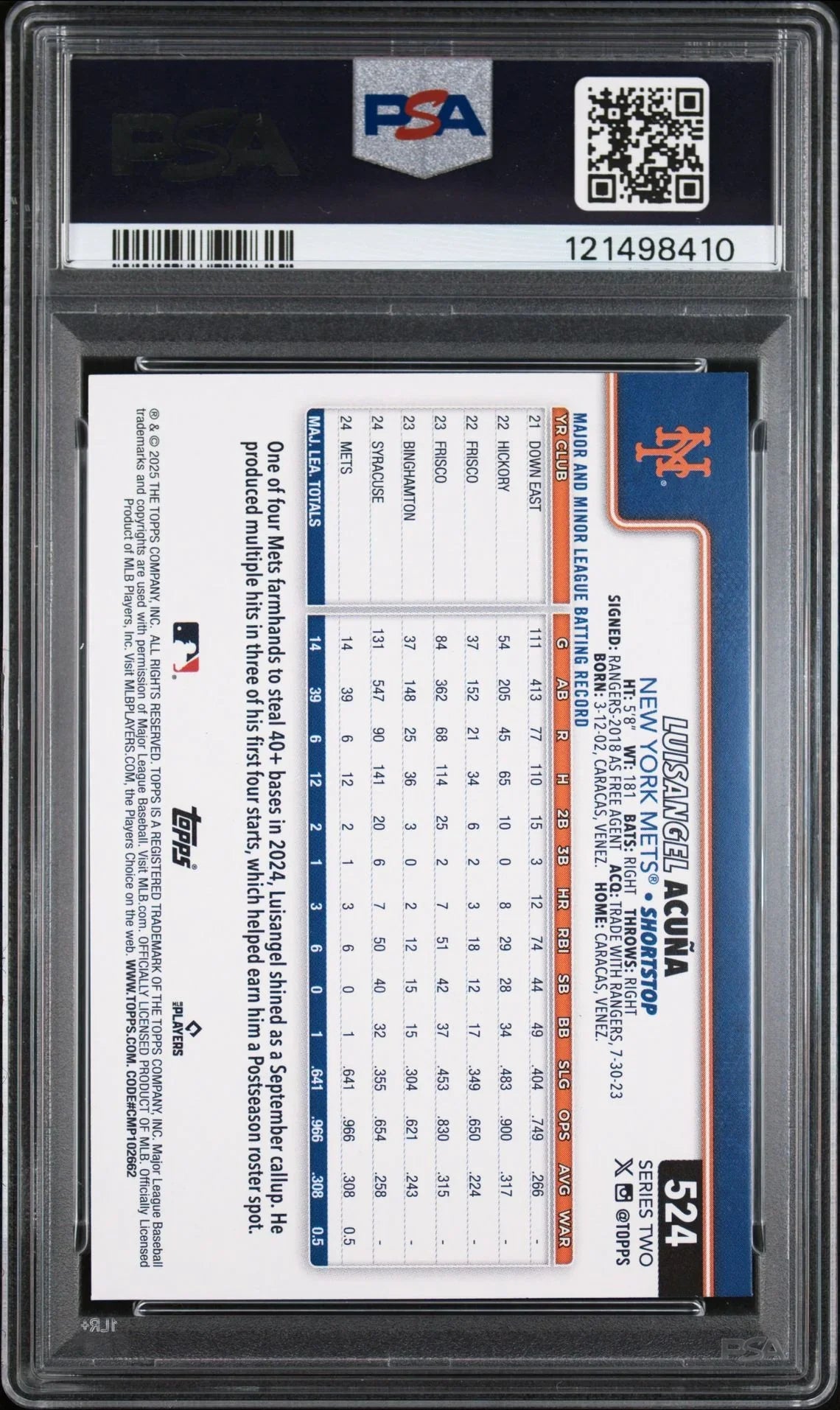 Product Name: 2025 Topps #524 Luisangel Acuna Rookie PSA 9