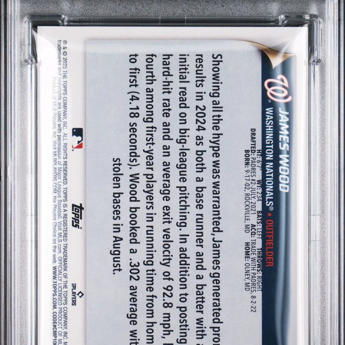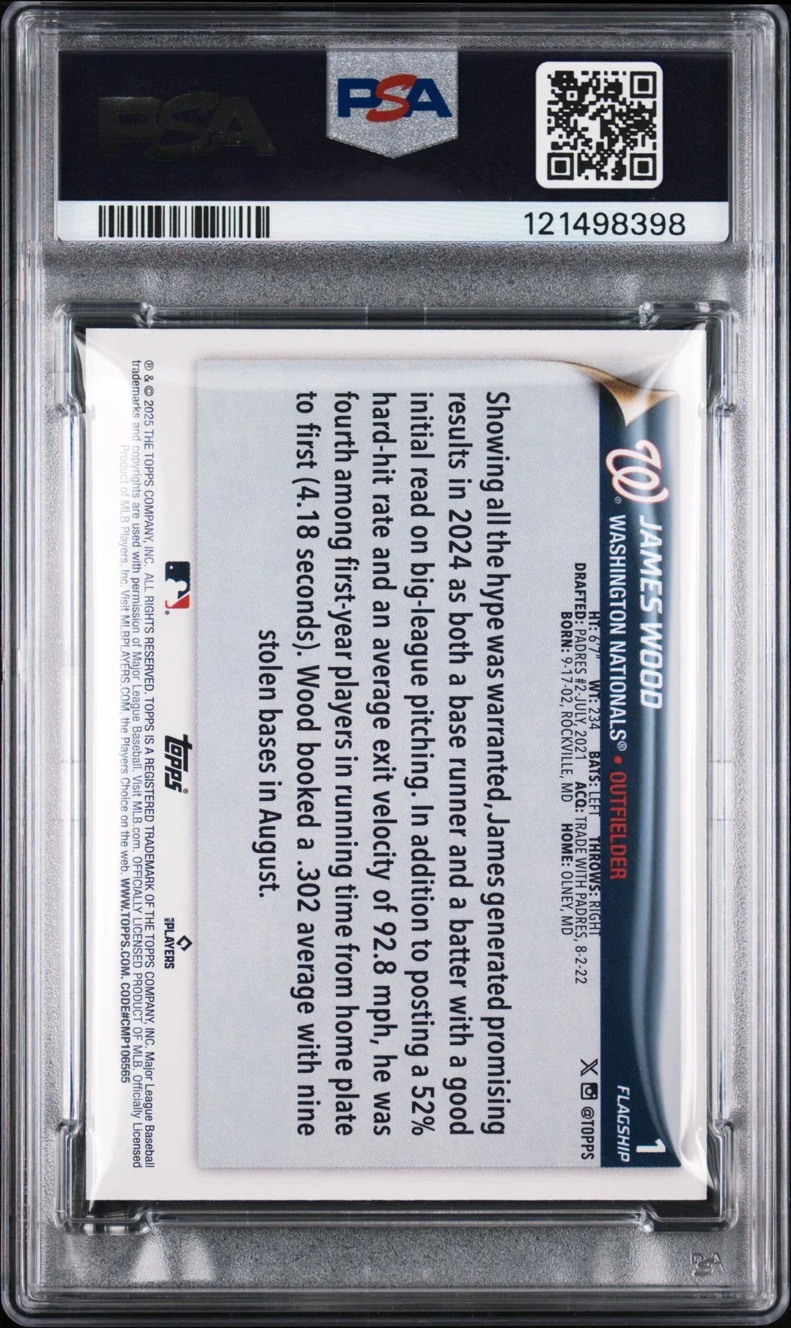 Product Name: 2025 Topps Flagship Collection #1 James Wood Rookie PSA 9