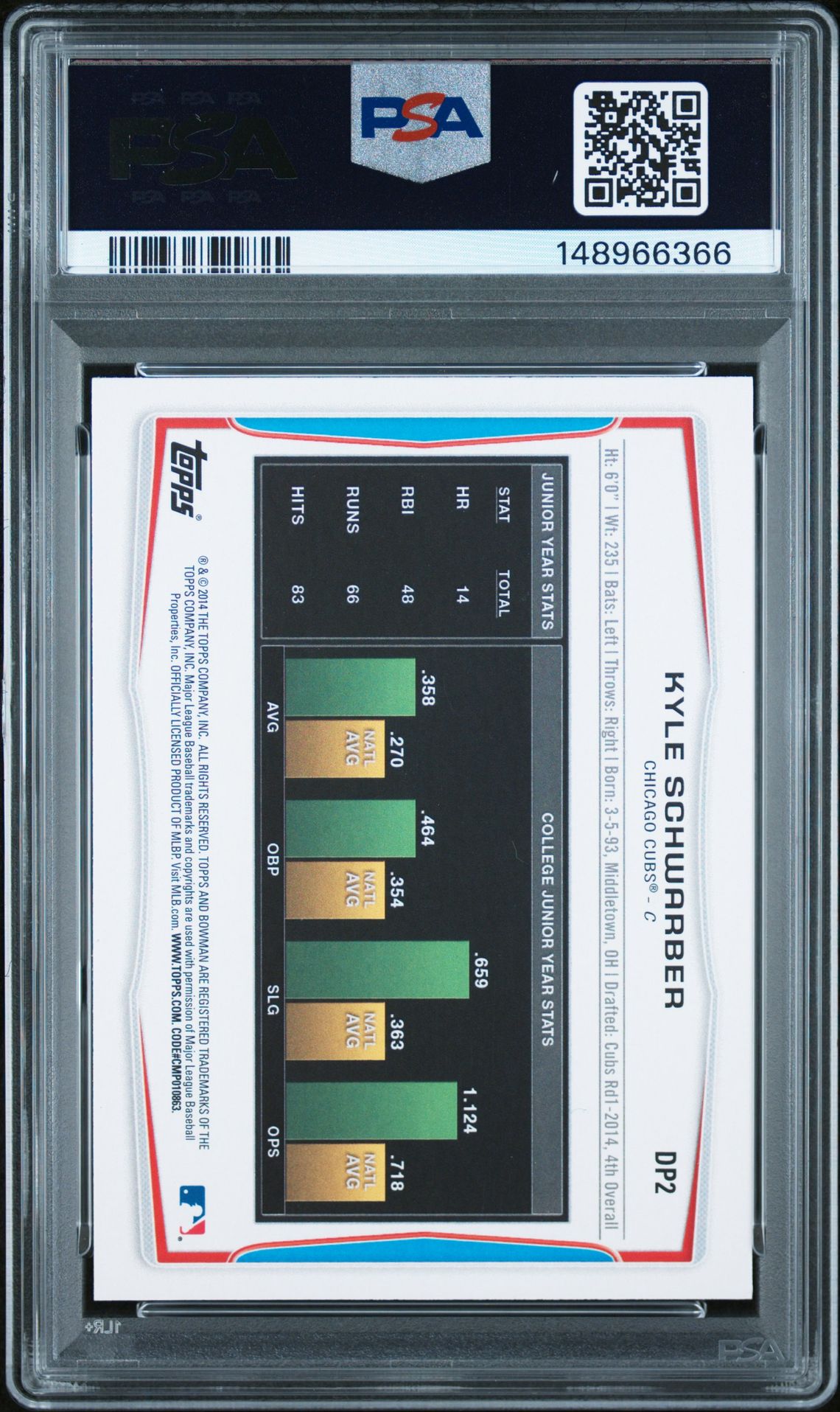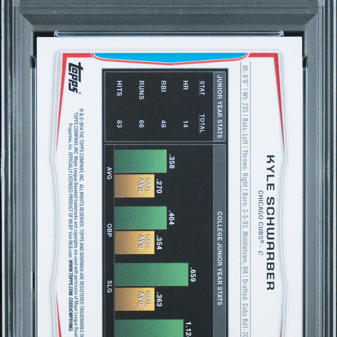Product Name: 2014 Bowman Draft Picks #DP2 Kyle Schwarber 1st Bowman PSA 9