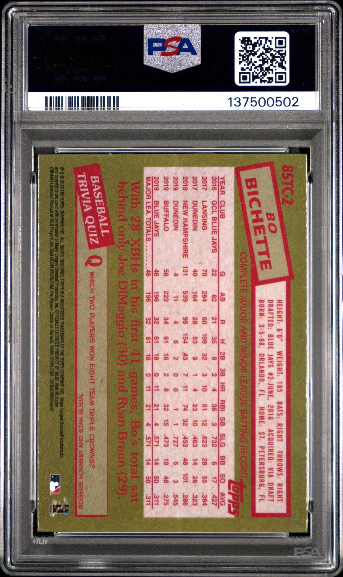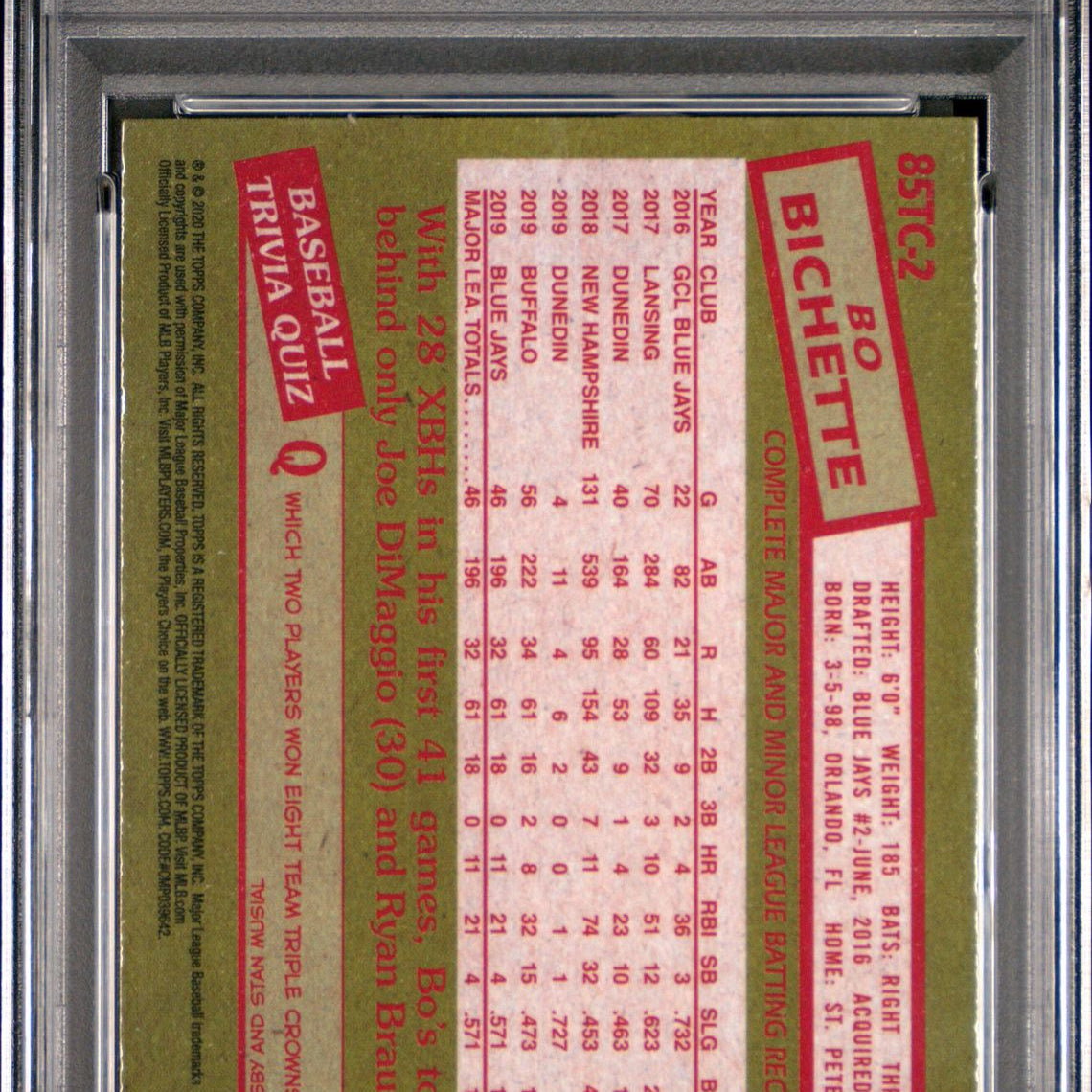 2020 Topps Chrome 1985 Topps Baseball #85TC-2 Bo Bichette Rookie PSA 10