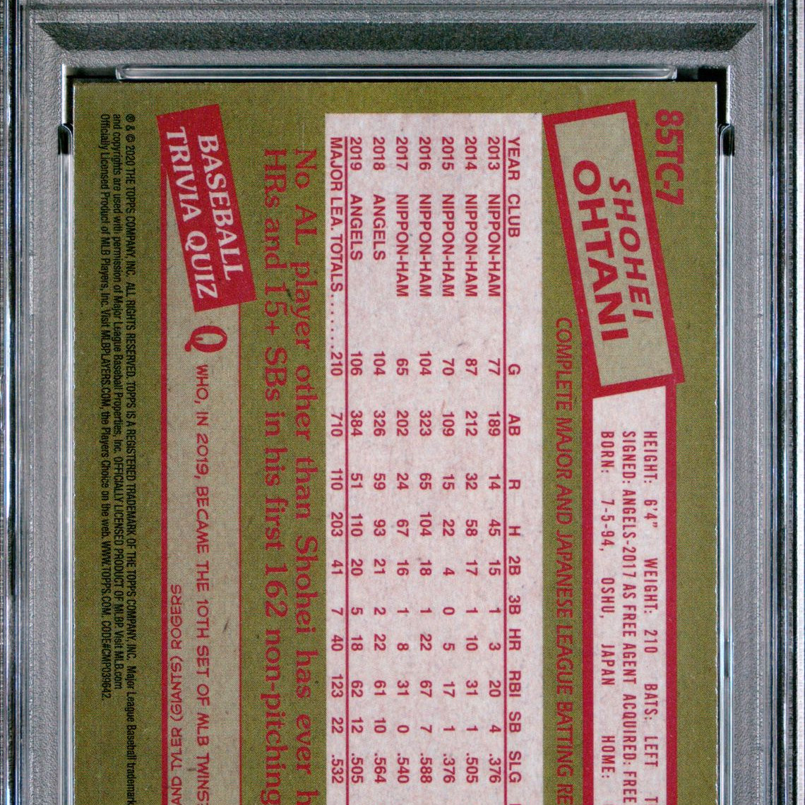 Product Name: 2020 Topps Chrome 1985 Topps #85TC-7 Shohei Ohtani PSA 10
