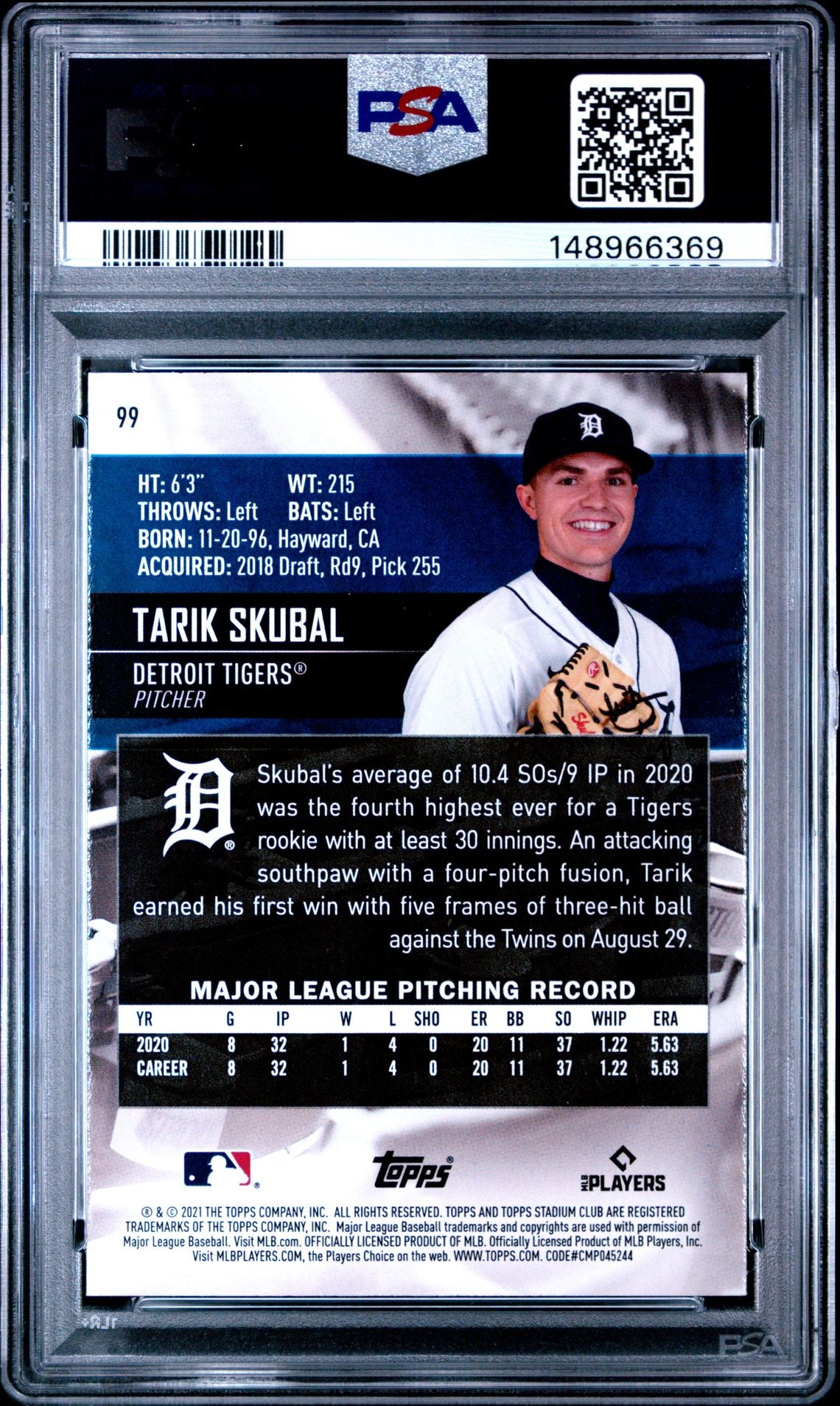 Product Name: 2021 Topps Stadium Club #99 Tarik Skubal Rookie PSA 9
