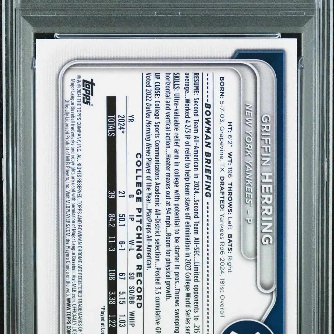 Product Name: 2024 Bowman Draft Chrome Sapphire #BDC-173 Griffin Herring 1st Bowman Gold PSA 9