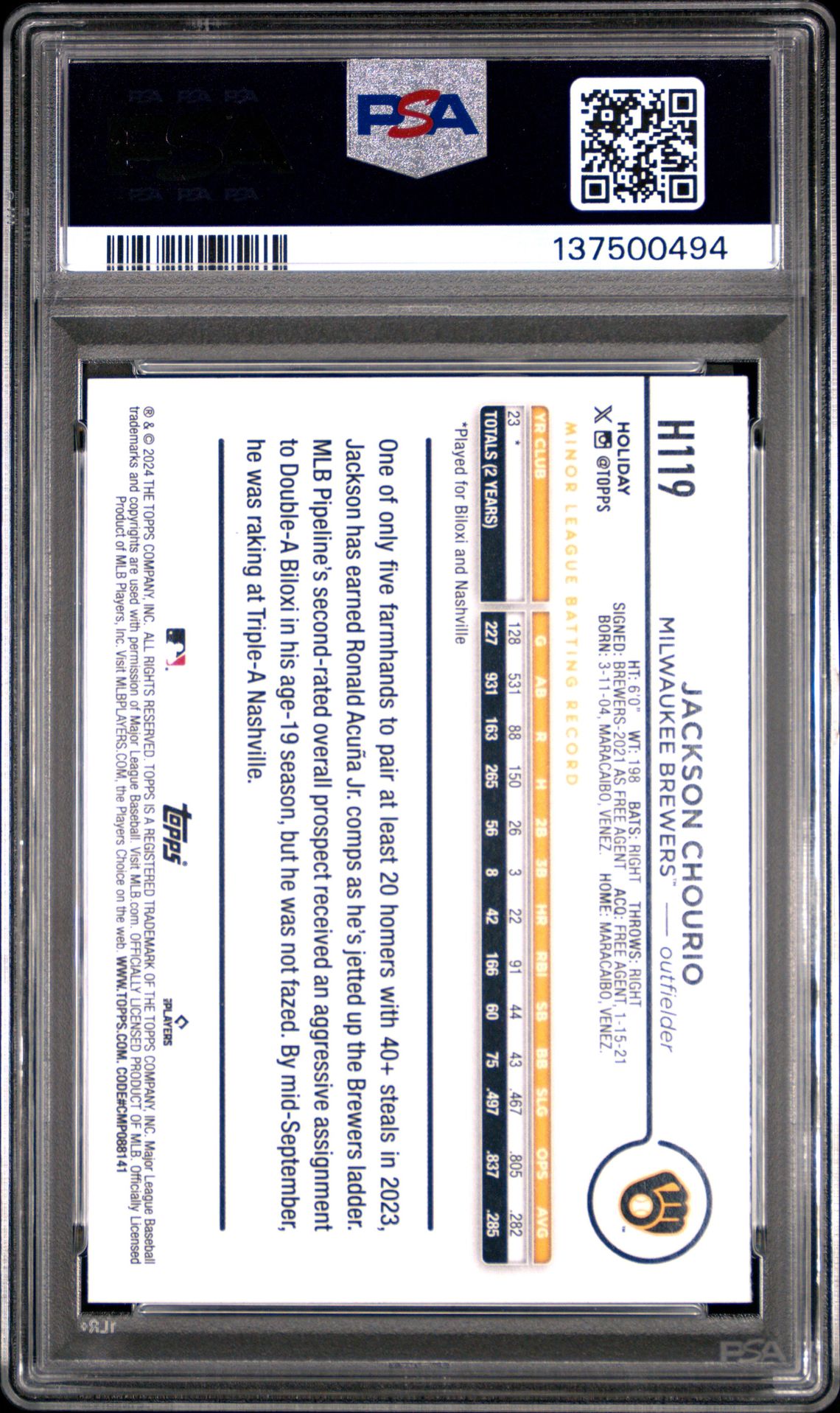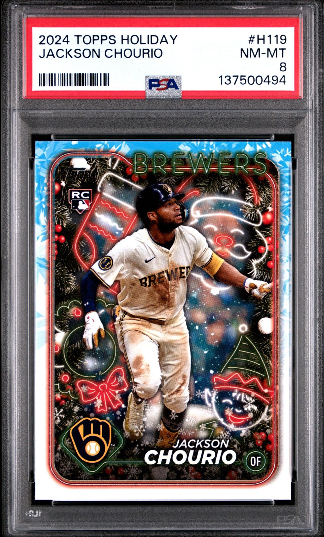2024 Topps Holiday #H119 Jackson Chourio Rookie PSA 8