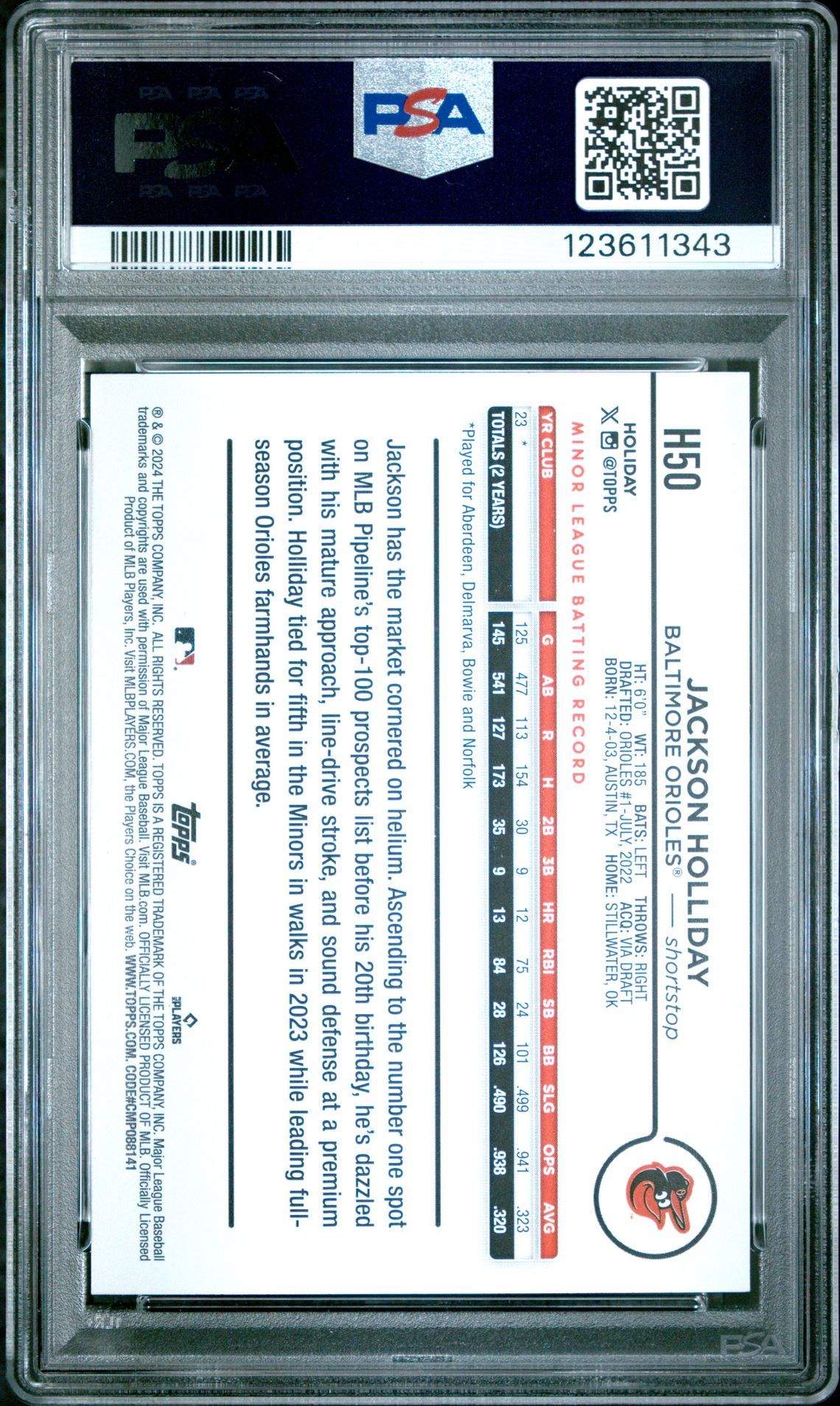Product Name: 2024 Topps Holiday #H50 Jackson Holliday Rookie Holiday Tree PSA 10
