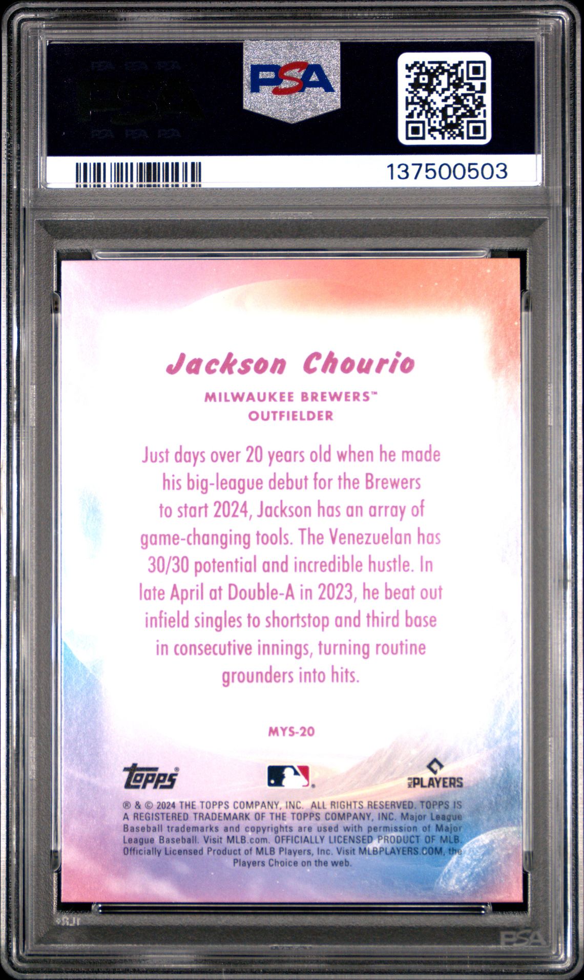 Product Name: 2024 Topps Update Mystical #MYS-20 Jackson Chourio Rookie PSA 10