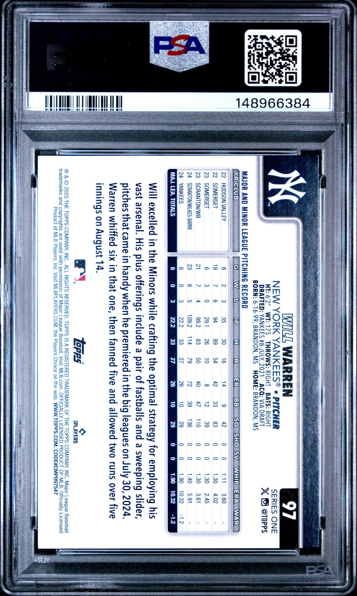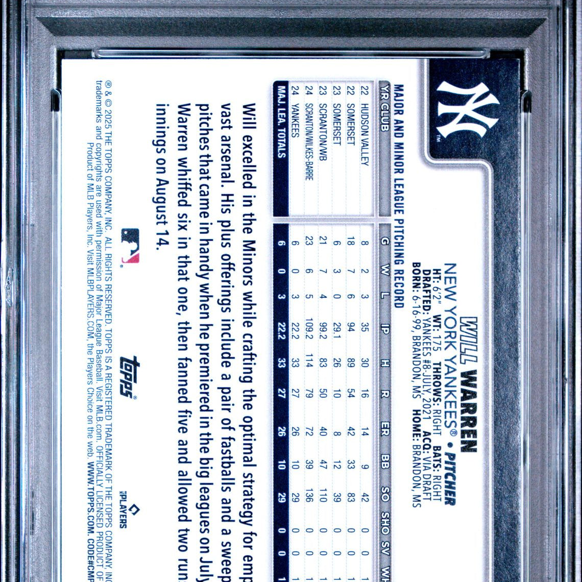 2025 Topps #97 Will Warren Rookie Holo Foil PSA 9