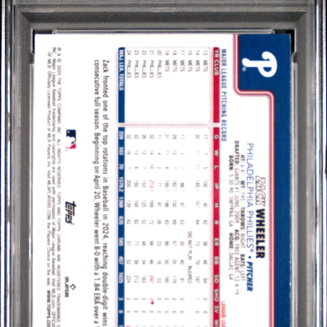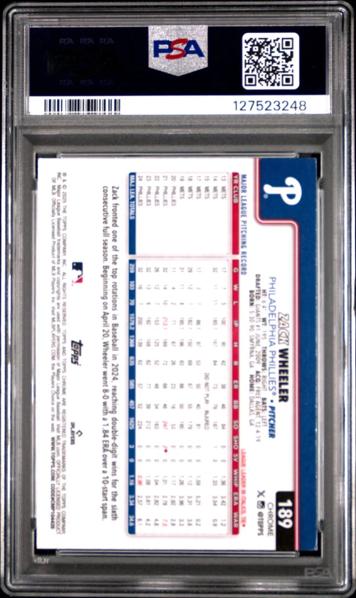 Product Name: 2025 Topps Chrome #189 Zack Wheeler Teal Refractor PSA 9