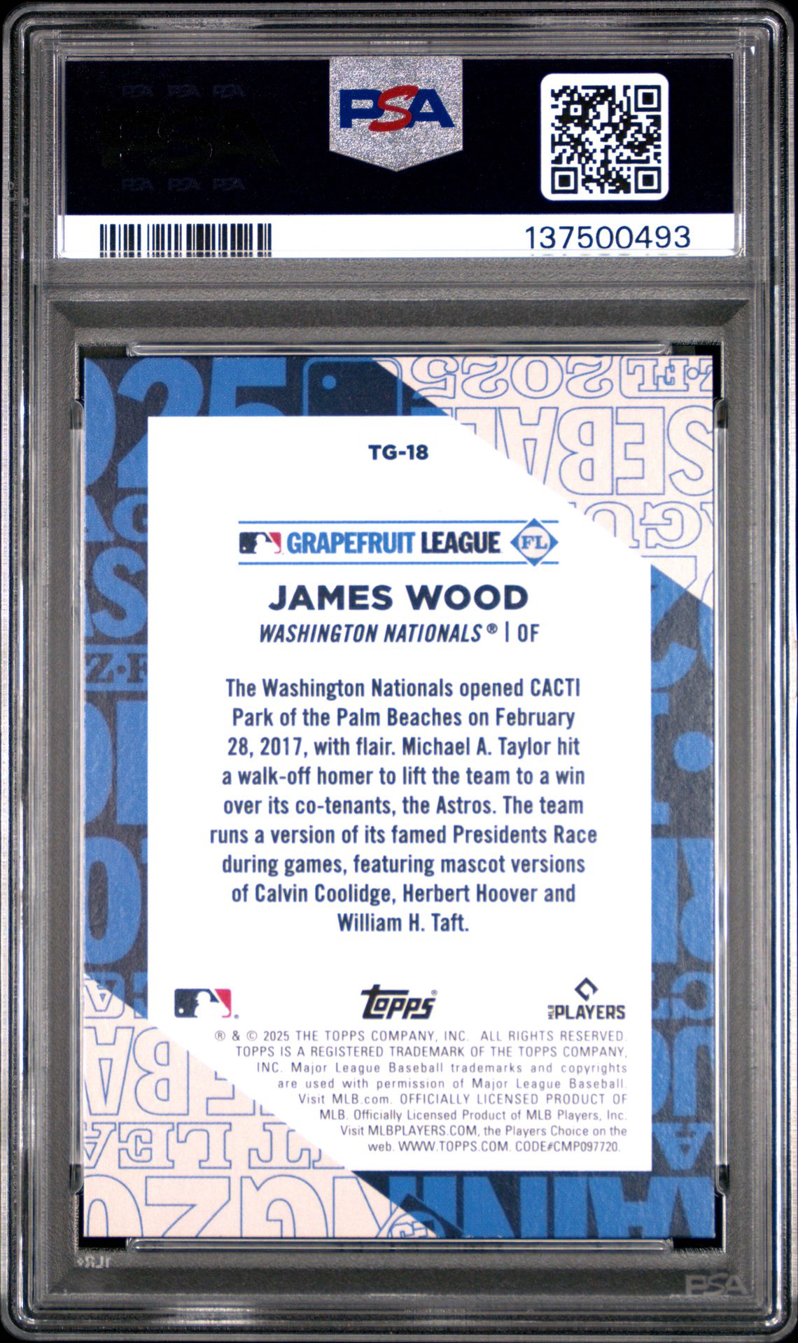 Product Name: 2025 Topps Training Grounds #TG-18 James Wood Rookie PSA 9